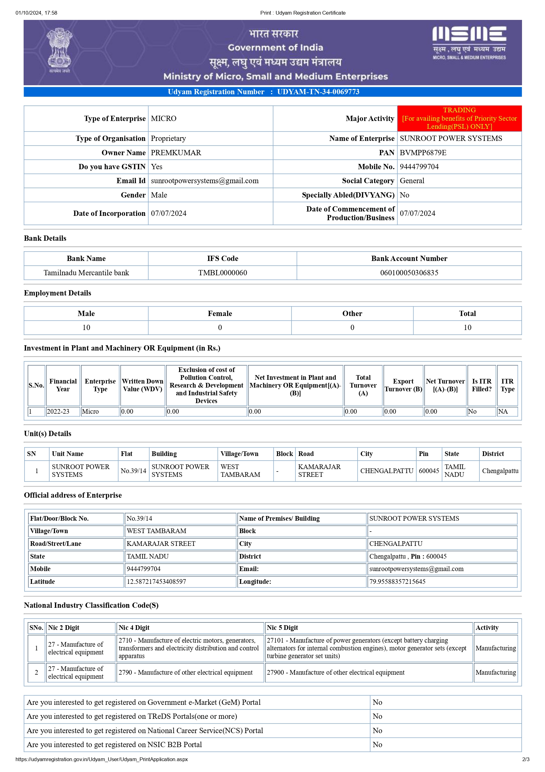 SunRoot Power Systems (West Tambaram, Chennai) is a local solar energy products dealer that supplies solar panels, inverters, batteries, home UPS systems, and related power backup solutions. The business appears active in the residential and small commercial solar segment, working mainly as a distributor/retailer for recognized solar brands. It operates locally under the SunRoot Solar Power name and focuses on sales and support rather than large-scale project execution.